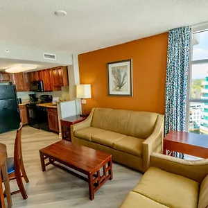 The Caravelle Resort embodies sophistication with its elegant suites and rooms that frame breathtaking oceanfront views. This resort is celebrated for its refined atmosphere and attention to detail in every aspect of the guest experience. From gourmet dining at its on-site restaurants to its expansive block-long poolscape, The Caravelle offers a luxury escape within the vibrant heart of Myrtle Beach. Guests can enjoy a variety of water features, a spa, and a fitness center, ensuring relaxation and recreation are always within reach. The Caraveline Resort's commitment to upscale accommodations and personalized service makes it a distinguished option for those seeking luxury on the Myrtle Beach oceanfront.